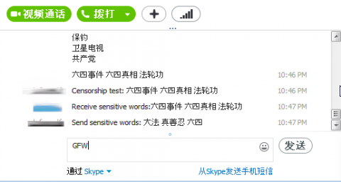 Great Fire分析了中国版Skype的通信地址。所有的通信服务器都在中国境外,比如新加坡,美国和爱尔兰。Tom Skype 恶名昭彰 ,因为其监视用户聊天记录并且将用户数据上传到中国的服务器上。新版的GMF-Skype,现在没有任何敏感词。