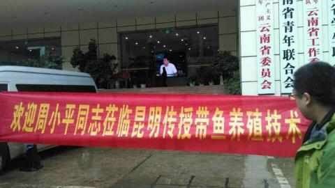 据参加此次“讲座”的A先生透露,在昆明周小平报告会上,有人敬献了带鱼一条,几位市民还在外面扯起了一块长长的横幅:“欢迎周小平同志莅临昆明传授带鱼养殖技术”,引来路人驻足围观。
