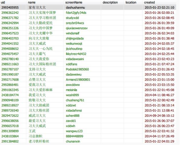 近日,有推特网友发现TL(时间线)上出现了很多ID中带有“习大大”、“习总”、“中国梦”等相关词条的账号,注册时间都是近期。推特用户 @老杨 整理了以下名单 。