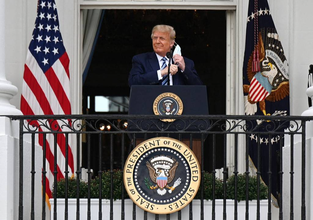 2020年10月10日,特朗普在白宫主持出院后首场公共活动,摘下口罩演讲,“我感觉好极了”。图片:CFP