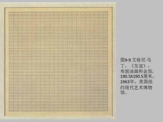 [ 图,一幅中东古代神庙的图 ] 现代抽象的格子就是古代神庙的柱子。比如,艾格尼•马丁的绘画《友谊》,就是平均重复的格子,此外无他。友谊就像一个神话主题。