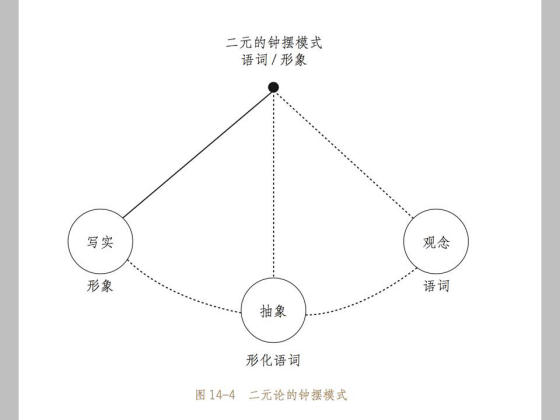 我们可以看到三个是排斥性的。匣子、格子和框子分别对应写实、抽象和观念艺术这三种类型。从写实到观念是语词和图像关系的极端发展,我把它叫做钟摆模式。