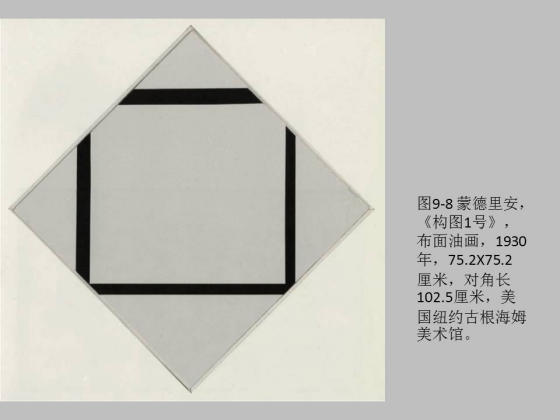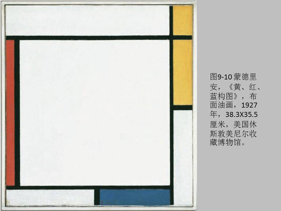 这个现代的窗子,或者格子就延伸到我们之前的所说的匣子,和我们之前说的西方早期的匣子的神性又对接上了,格子就是匣子或者窗子的平面化。比如,蒙德里安的《构图 1 号》。
