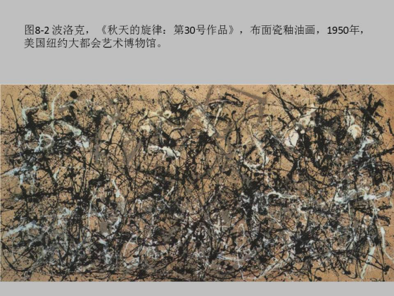 但是它必定有走到尽头的时候, 五十年代后出现的抽象表现主义和极少主义走向了反面,从格子的“神启”走向了格子的“去神话”( demystification )。波洛克认为行动本身就是物质本身,在画布上的行为泼洒只是画布的一部分,没有乌托邦,只是一种行为,滴洒的“自由”痕迹其实是与画布本身的格子是一样的物质性的纹理,一个是泼洒的,一个是编织的。所以,罗森伯格说,现代绘画就是“只是去画”而已( JUST Paint! ) .