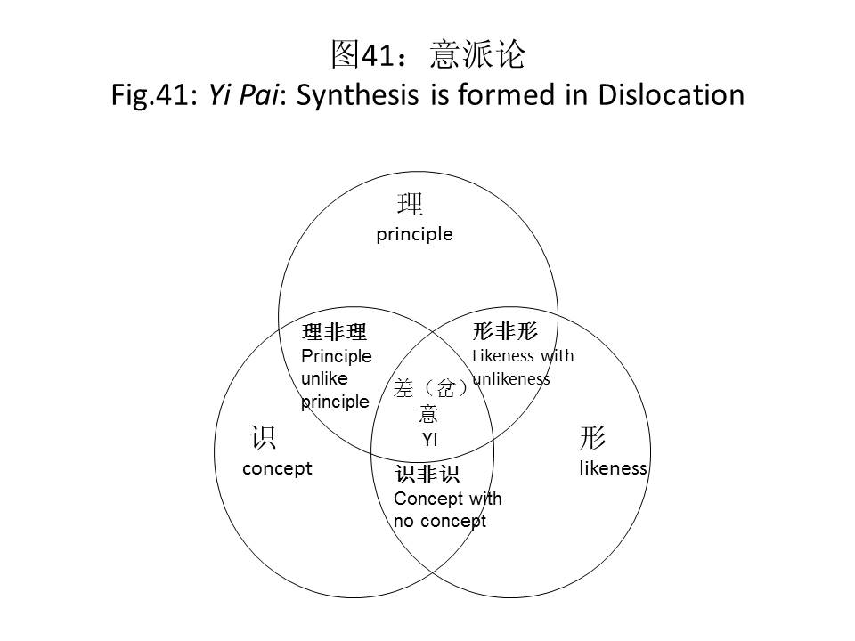 比如,从语词和形象的二元角度,我们可以看到再现走过的从古典写实向当代观念艺术摆动的历史,中间是现代抽象艺术。之所以其中某一元要走极端的原因在于,它要求另一个完全附属自己,比如主体要求客体对象完全对应自己(观念艺术),或者客体要求主体完全对应自己(古典写实)。我们要认识到,艺术不可能承担描述这种双方完全对称的任务,对应和对称建立在一种自足性、绝对性和排斥性之上。自足就要绝对,绝对叫排斥。所以我在意派这里强调,“意”是岔意性,意在言外,言不尽意,意不可能是主、客体,概念和形象之间的完全对应的东西,它不可能是绝对的稳定性,因为,主体和对象,主体和语境都是你中有我,我中有你的。所以,最终艺术中的理、识、性不可能是分离的独立的,必然是互在的。而艺术作品的意义也就不可能是唯一的,会出现岔意。最重要的是我们在认识艺术作品的时候,通过形非形,理非理,识非识,去研究主体、对象和环境之间互动的交汇地带,这是解读艺术作品的关键所在。