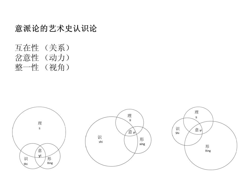 其实意派主要是讲这个,而不是一个风格。从匣子、格子和框子的角度来说,中国传统绘画就是一个例子,它没有取景画,因为它是一个长卷,其中心点在动。画家绝对不会拿一个丢勒式的框子去面对对象,这个长卷不是一个取景框能决定的东西。比如,“三远”, 平远、深远和高远,能放在一张画上吗?不可能,你怎么能往上看,往深看同时又往两边看?问题是,三远应该把主体、对象和情境都放在里面去,三远的角度给我们艺术史家提供一个角度,我们能否从三远角度去解读这个艺术作品,这是给我们一个挑战。主要的是主体性并不排斥在取景框之外,他可游可居,可以出来可以进去。所以,这些传统的东西,虽然我们用的是古代的概念,但是在后现代以来当代西方理论当中,我们也可以吸取一些有用的东心,能够融合嫁接起来,形成一种新的艺术史或者艺术理论的视角。这是我思考的一个东西。其实,不光山水画,古代人物画亦如此,不能单独从匣子、格子和框子的一个角度去认识。比如,《韩熙载夜宴图》分成几个部分,用屏风隔开每一部分,形成一个空间自然连接和循环的运动透视,所以我觉得我们眼界和思维应该更宽一些,意派因此是一个艺术史的认识论不是风格或者形式主义或者流派的规定性理论。一、互在性,我觉得互在性是一个关系,是一个永远有向着“理、识、形”中的一方倾斜的关系,所以,它没有一个永远的绝对真理,或者说,意或者真理永远是缺失的。二、岔意性。缺失造成岔意,而缺失就是动力,有动力才让世界中各方面发生关系。 岔意性是一个动力。我们要把这些角度具体到某种研究中,比如说研究抽象画,我们就可以从“理的倾斜”这个角度介入到具体作品的研究中,探讨它的意义。三、整一性,它是一个视角,有的那边侧重一些,有的那边可能需要更多的关注一些,但是你不能忘记其他的方面,你的主体性可能被很多所谓的客体性牵制,你要不断的在理、识、形之间移动才能把握整体,文化也好艺术史研究也好,都要把握这种整一性。