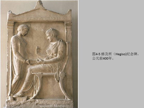 如果说埃及的浮雕还不是匣子,那么古希腊的浮雕向着匣子走进了一步。然而,尽管去掉了文字等与场景无关的符号因素,而且人物是按照透视安排的,也有了情节,但情节发生的场合仍然不是真实具体的。