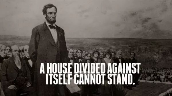 亚伯拉罕·林肯已经给了我们足够的警告。“一栋分裂两半的房子——”林肯说,“是无法维系的。”