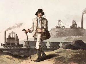 油画描述:用煤发动火车和机械,又用火车和机械开采更多煤(1814年,英国)。