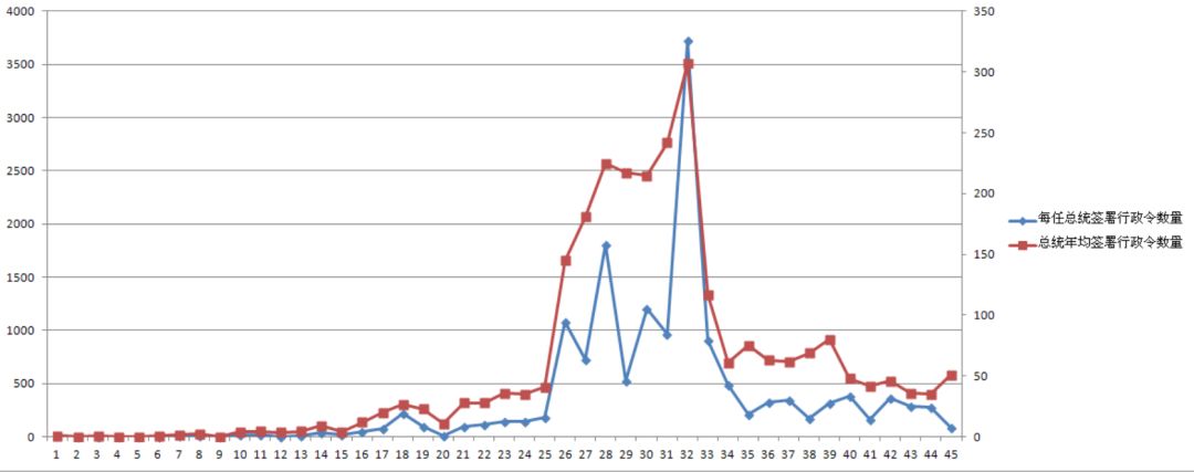 数据来源:The American Presidency Project, http://www.presidency.ucsb.edu/data/orders.php