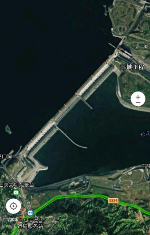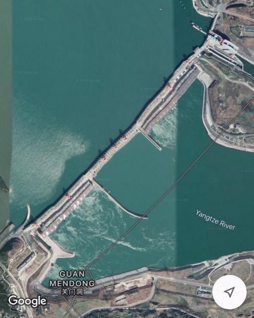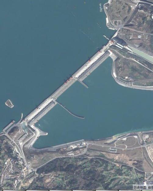 一、对比两张三峡大坝的谷歌卫星图片,三峡大坝已经变形