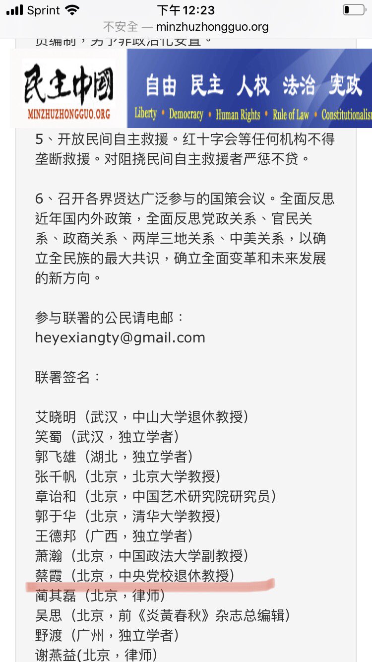 仇志榮: #BREAKING 剛與蔡霞教授確認@realcaixia 是她本人昨日收到官方處罰通知後開設的帳號。她向我表示,推特是廣闊交流的管道,會堅持與各方朋友交流。請關注本台詳細報導。