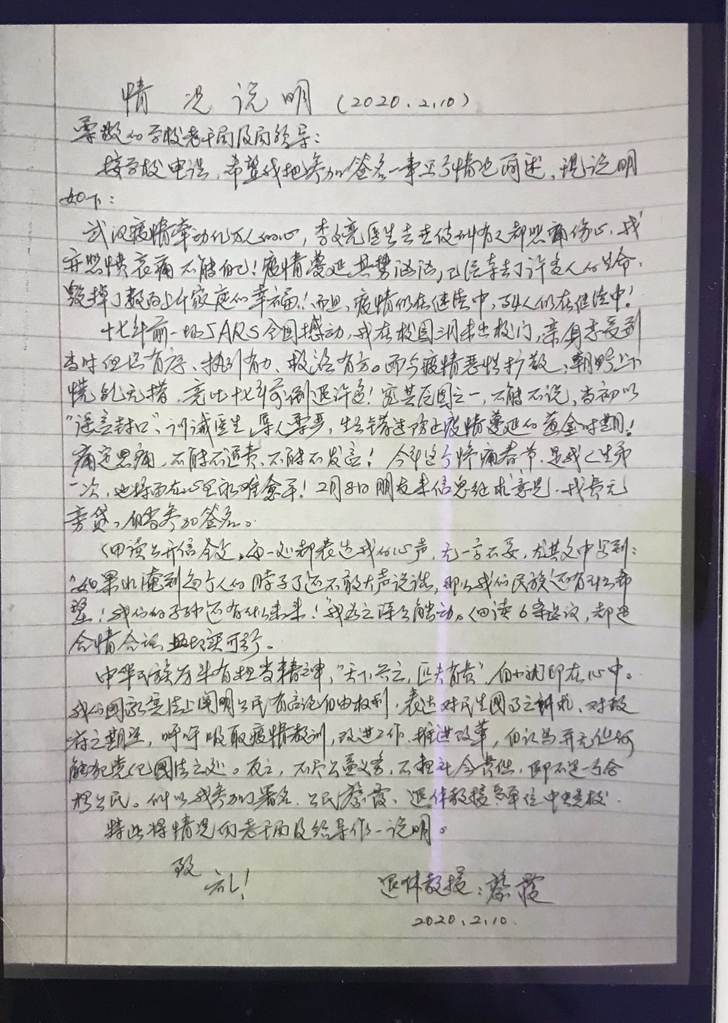【情况说明】中央党校在开除我出党的决定中,历数我有严重政治问题的言论,其中包括我参与争取言论自由公开信的签名。中央党校在当时电话谈话中,要求我写个参与签名的情况说明,我把我写的情况说明公布出来。同时因篇幅有限,将我参与签名的公开信摘录推出如下: