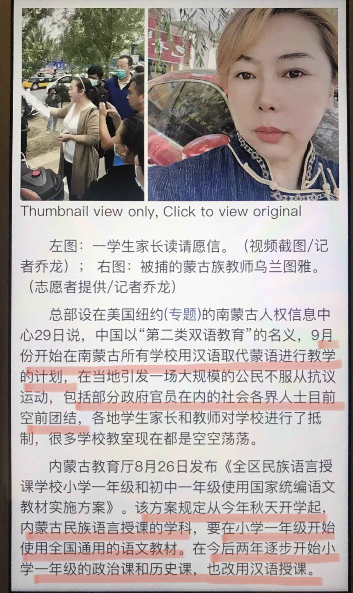 【中共强力压制蒙族干部反抗文化灭族暴政】蒙古族民众全民反抗文化灭族暴政,蒙古族党员干部与本民族民众站在一起,其中有任领导职务的官员。中共极权专制对蒙族公职人员卡脖子断生路,勒令必须送孩子上学,如不服从,便以撤职、降职、开除、停发一切待遇、强押孩子进园等流氓做法,进行恐吓、压制。