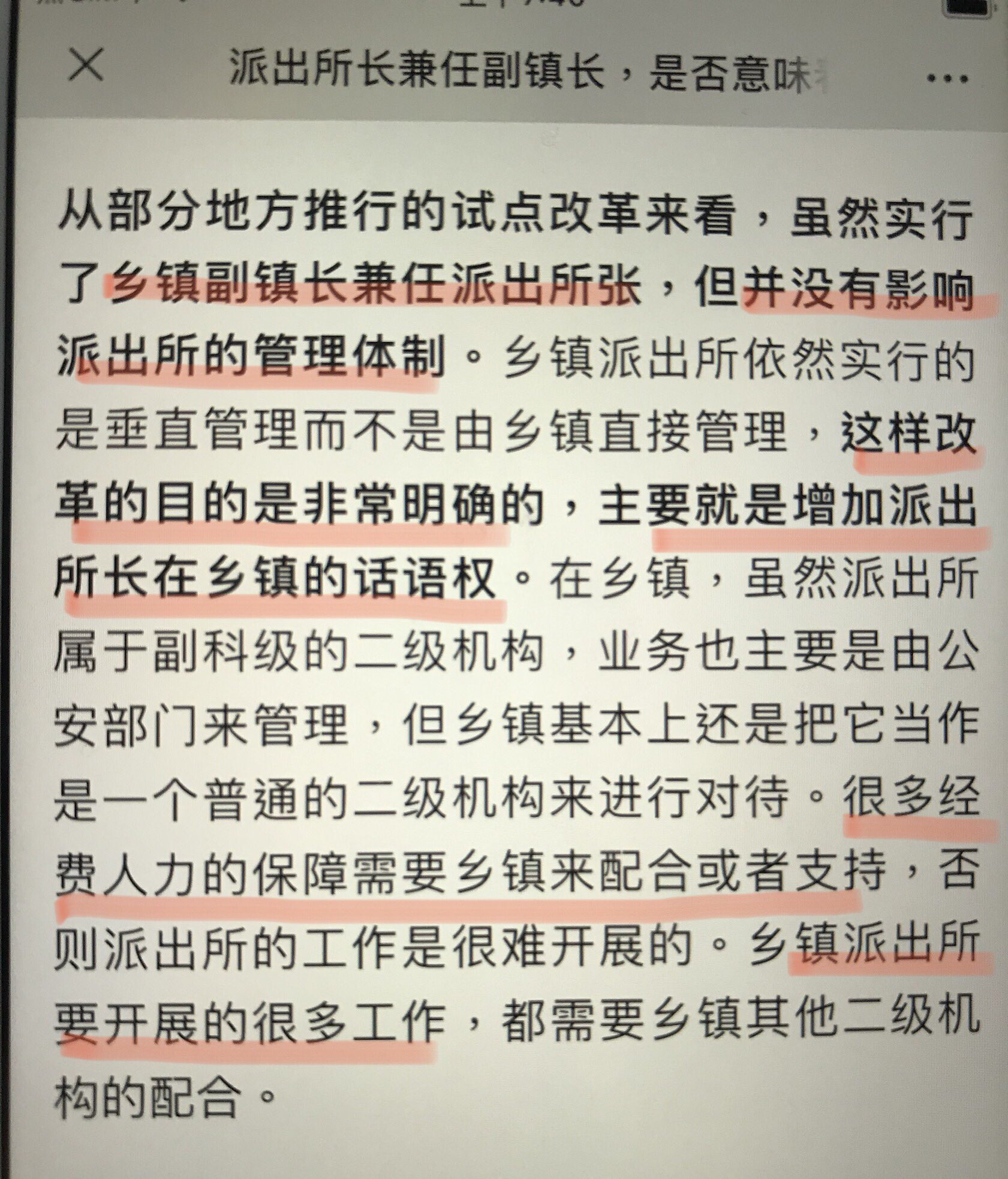 蔡霞: 🔁 4,这意味着,中国自上而下通过强化警察在政府系统中的权力地位,正逐步形成警察控制政府,政府配合警察的高强度管控社会的警察政府模式。确实如这文章所说:增加乡镇派出所所长在乡镇的话语权,可以统筹整合乡镇的力量,共同开展好派出所牵头的有关工作。<hr>10/13/2020, 8:05:29 AM