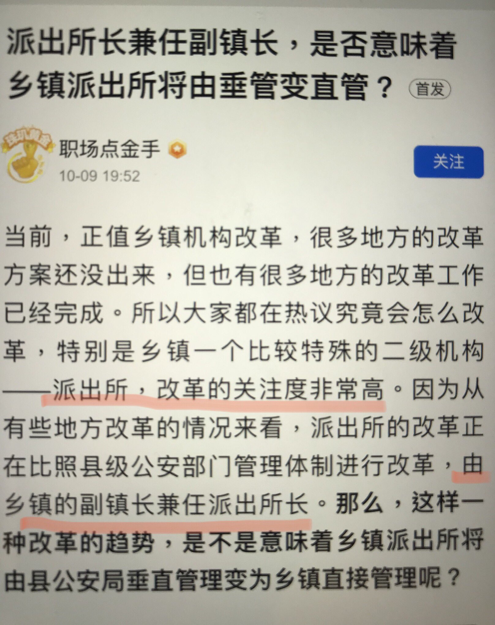 中国正在酝酿表面叫付乡镇长兼派出所长,实质是派出所所长兼任副乡镇长的所谓“改革”。这标志着中共国进一步强化警察治国。1,今年7月中国将400万辅警转为正式编制,使警察总数达到600万之多。扩张政府人员编制意味大幅度增加财政支出,等于纳税人交钱给强权加强监视控制自己。(请接着看下几条推文)