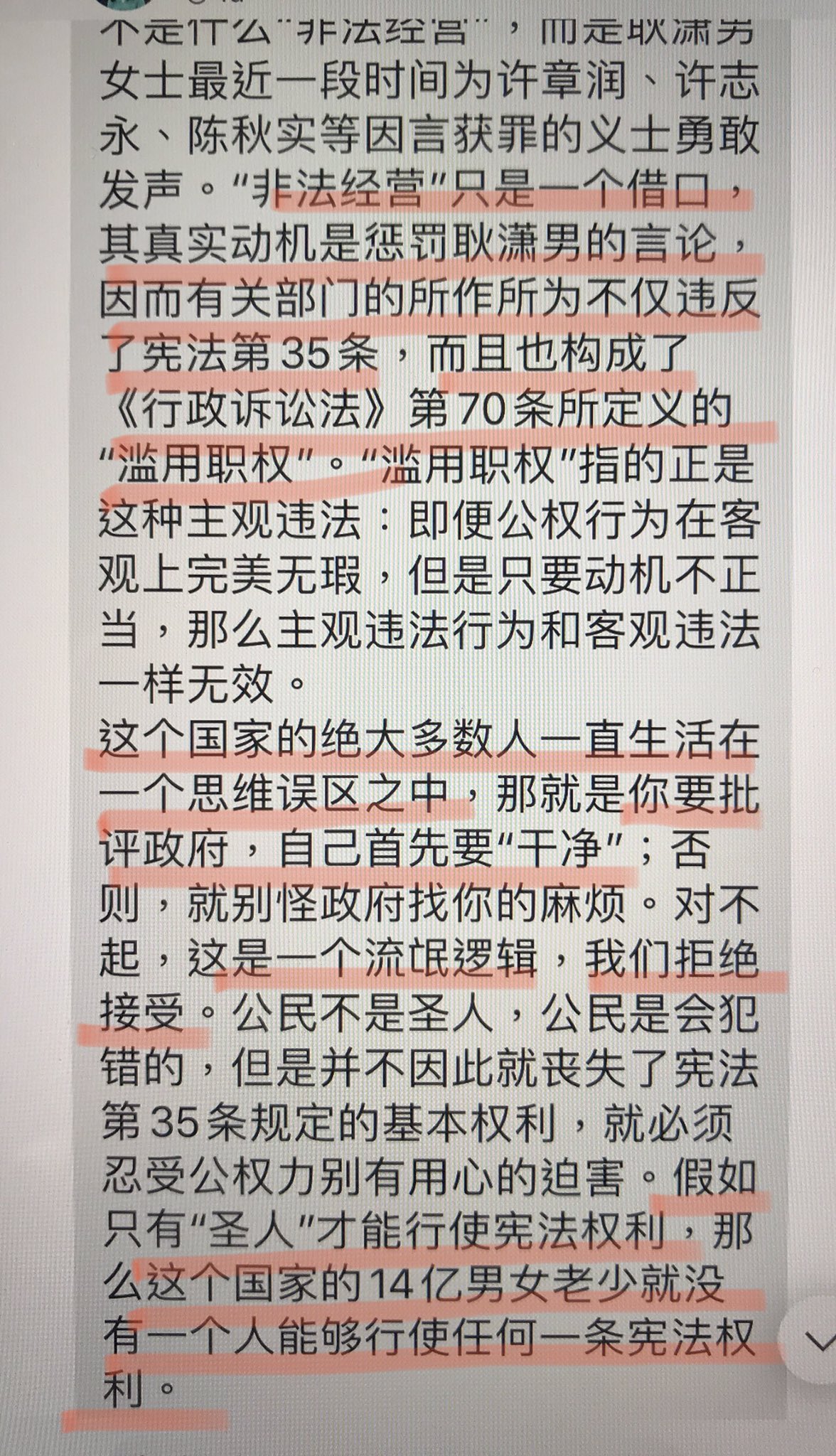 【联名呼吁释放耿潇男夫妇公开信】指出:1,“非法经营罪”是计划经济时期的“投机倒把”的翻版,是可以由强权任意解释含义的“口袋罪”,其主要功能是掩盖习中共当局对经济界企业界良心人士进行的政治迫害,是彻头彻尾的恶法。2,不是耿潇男夫妇犯罪,正是极权当局滥用职权在犯罪。篇幅所限,此为节选发推。