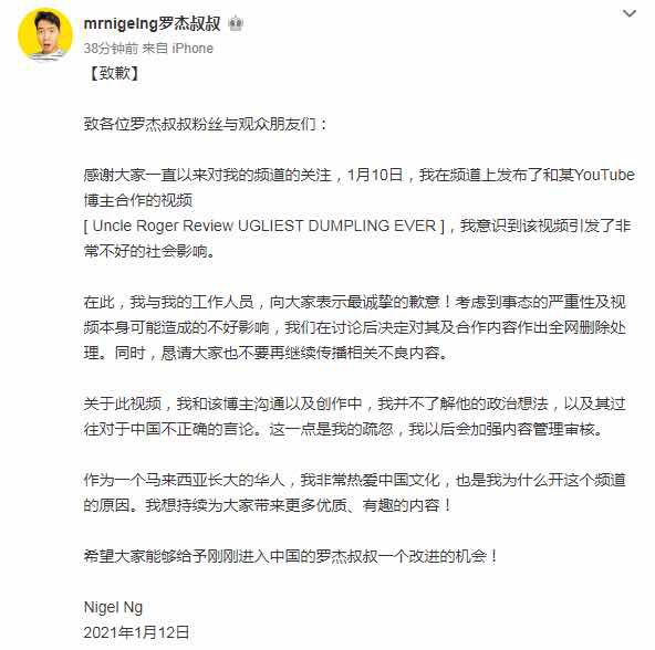 Karen Tse: .@MrNigelNg has apologised to his Chinese fans on Weibo for creating a video with “StrictlyDumpling” @mikexingchen, because the latter has been open about his views on the Tiananmen Massacre. Ng then deleted all content related to Chen. What a shame, RMB is not the new MSG.