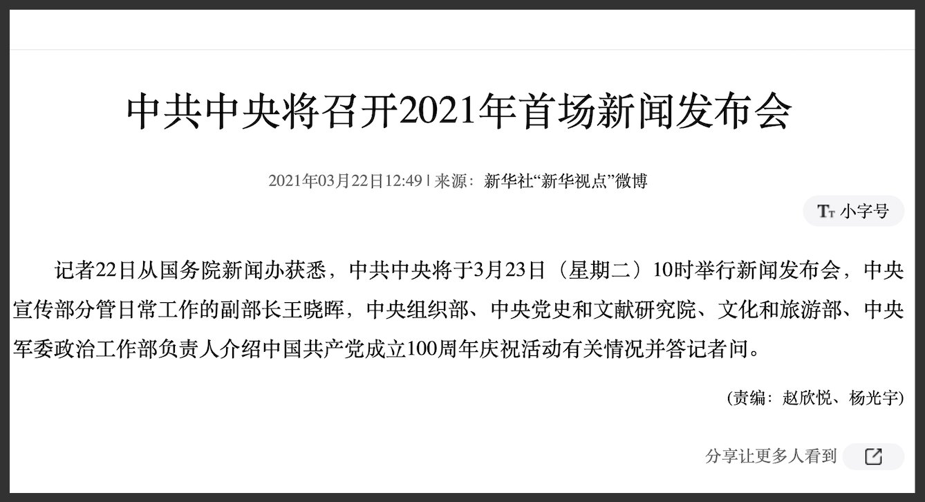 The CCP Central Committee is holding a press conference tomorrow to let everyone know how celebrations for the Party’s 100th anniversary are going to go down. Should be an intriguing exercise in dullness for media discourse junkies. Perhaps some telegraphing of major themes.