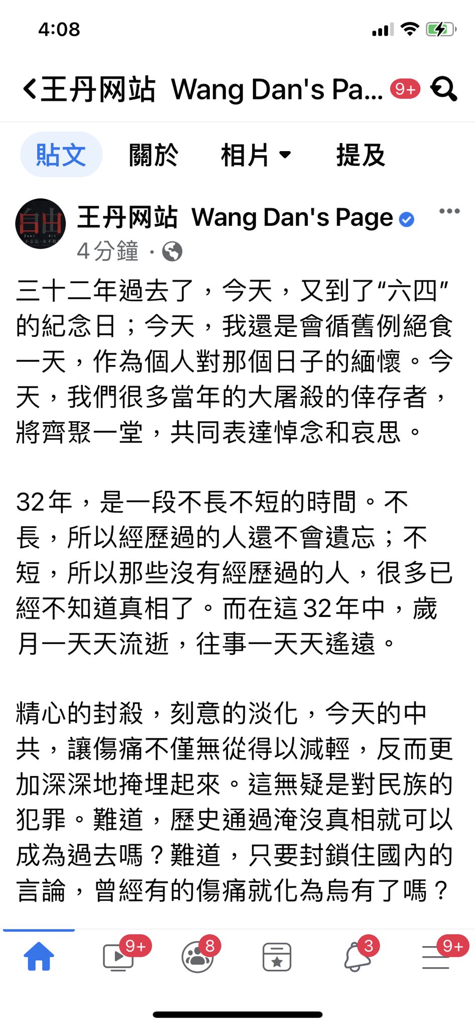 六四32年︱王丹的六四祭文 謊言掩蓋不了血寫的事實 https://tw.appledaily.com/international/20210604/CFPTNOYOSRAWDGGKJCZ6K33KZU/?utm_source=twitter&utm_medium=social&utm_campaign=twad_article_share&utm_content=share_link