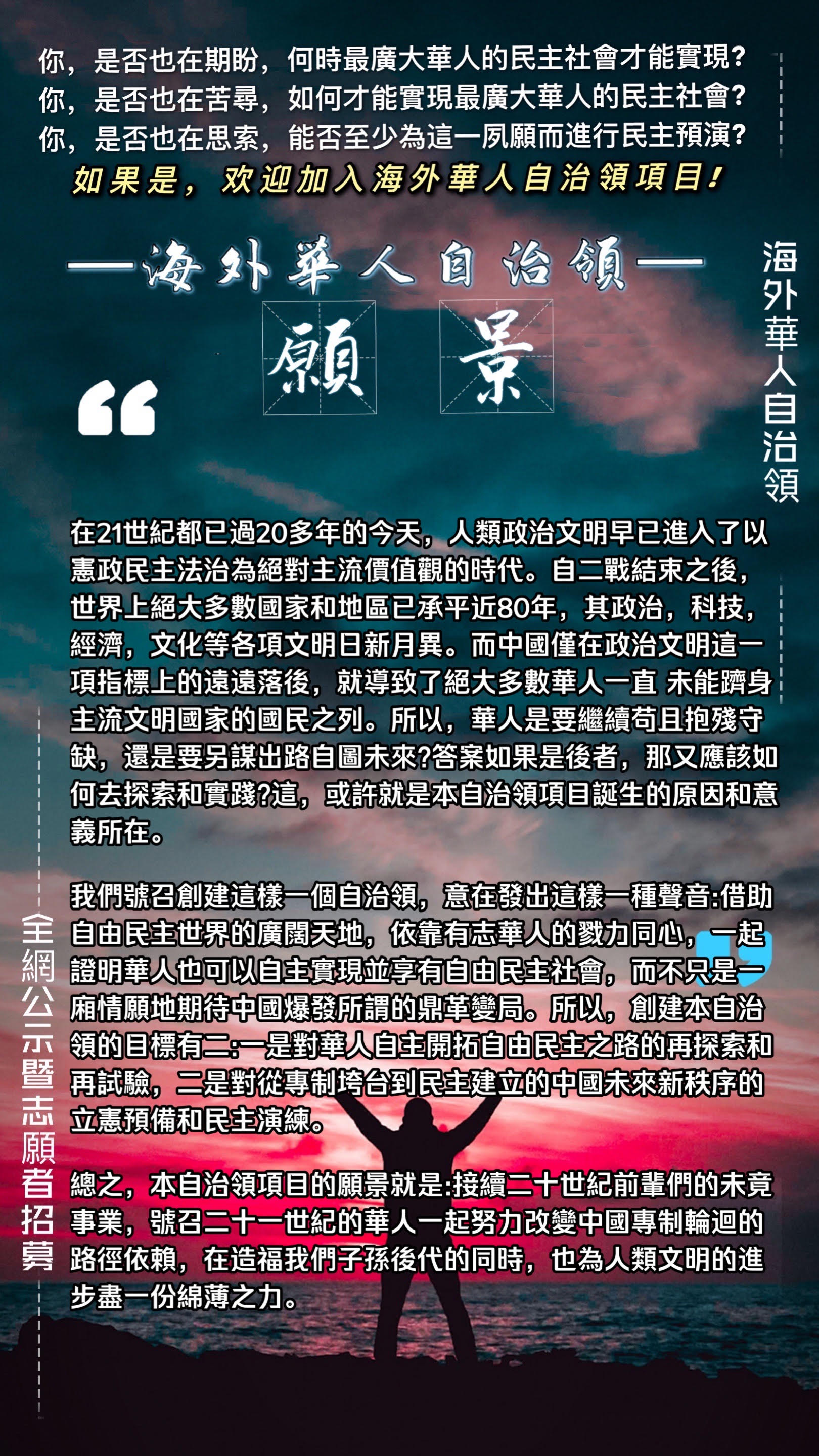 關於創建海外華人自治領工程的公告: