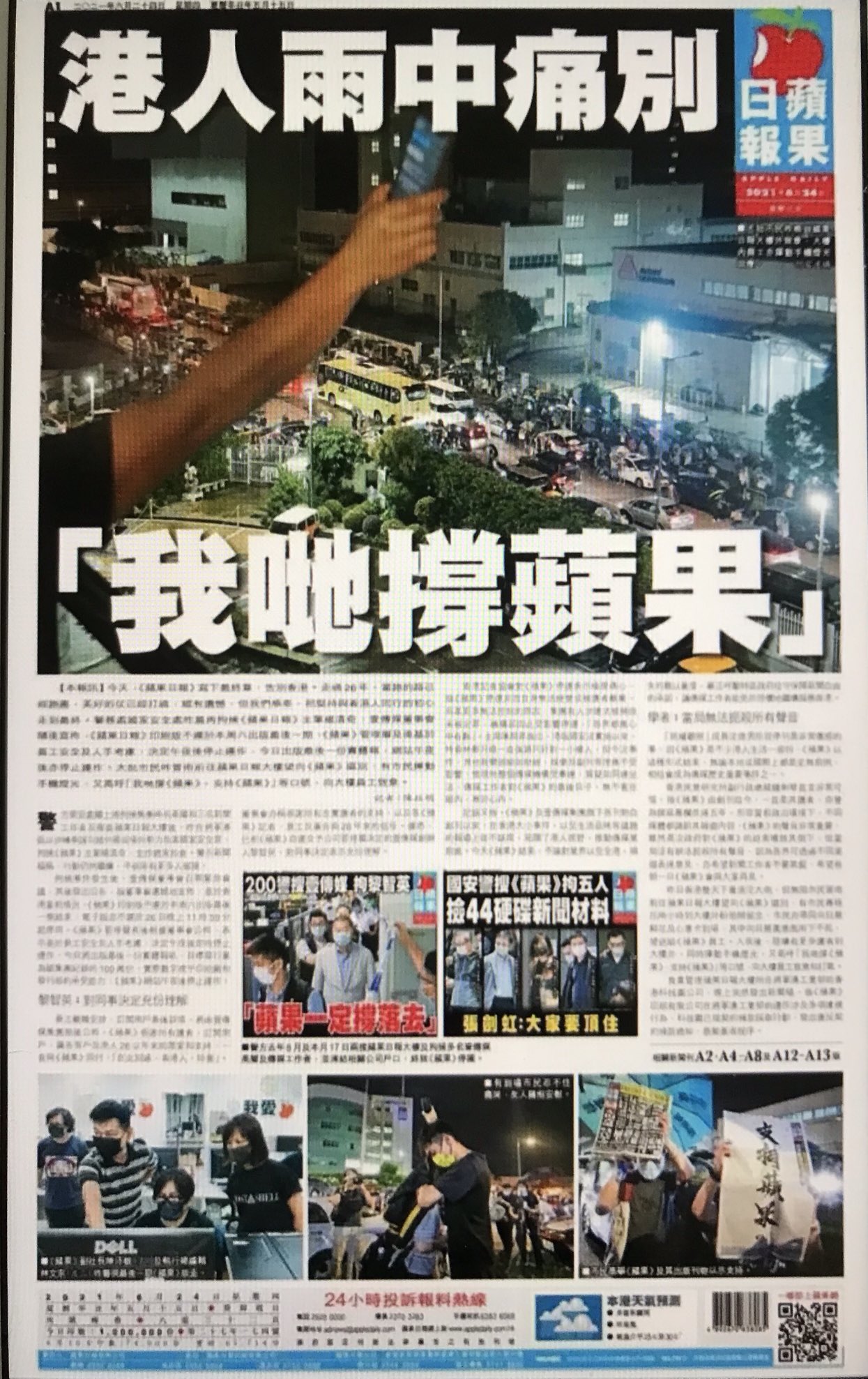 自由繁荣的香港,坚强不屈的700万香港民众,抗争到最后一刻的苹果日报……,自1997年以来香港人的捍卫独立自由,捍卫公民权利,捍卫人格尊严的英勇抗争,所有的所有,永远铭记在我们的心中………。