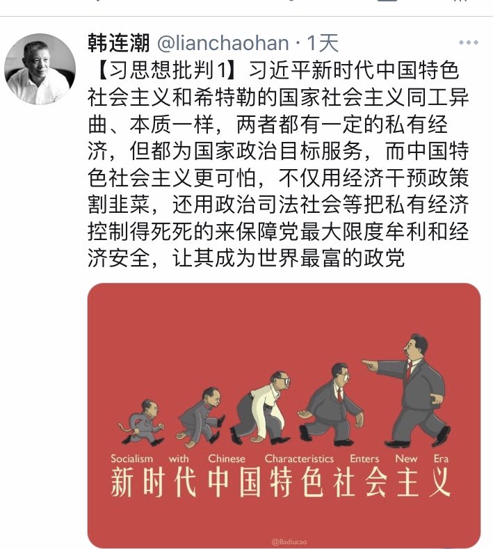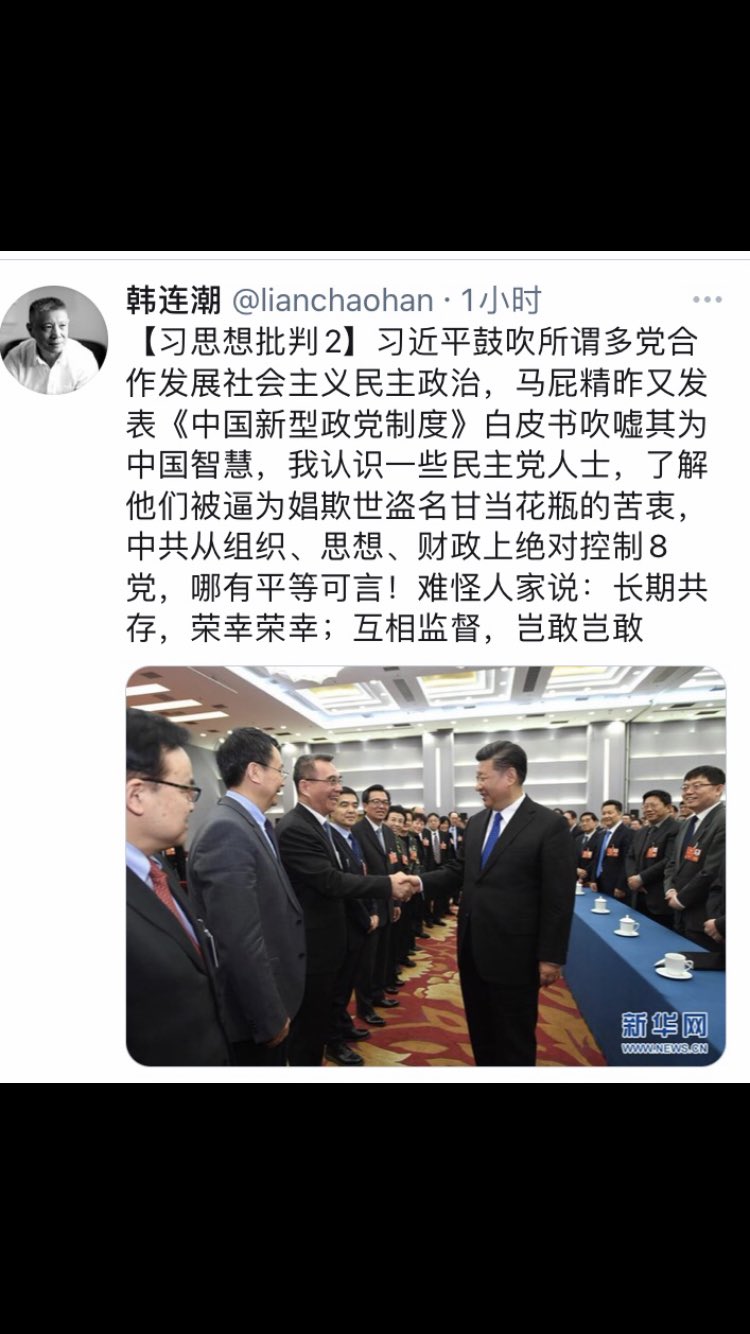 今天韩先生推出习思想批判3。我将跟转这一系列推文。事实上,习知识可怜,何来“理论”?王沪宁为三朝“党魁”刀笔吏(美称叫“文胆”)已显“江郎才尽”囧相,到习这段只能拼凑。因而所谓习思想,其实狗屁不通。本不值一谈,然习独霸话语权,强迫大陆全民学习,甚而吹嘘“指导人类”,确有必要曝光示众。