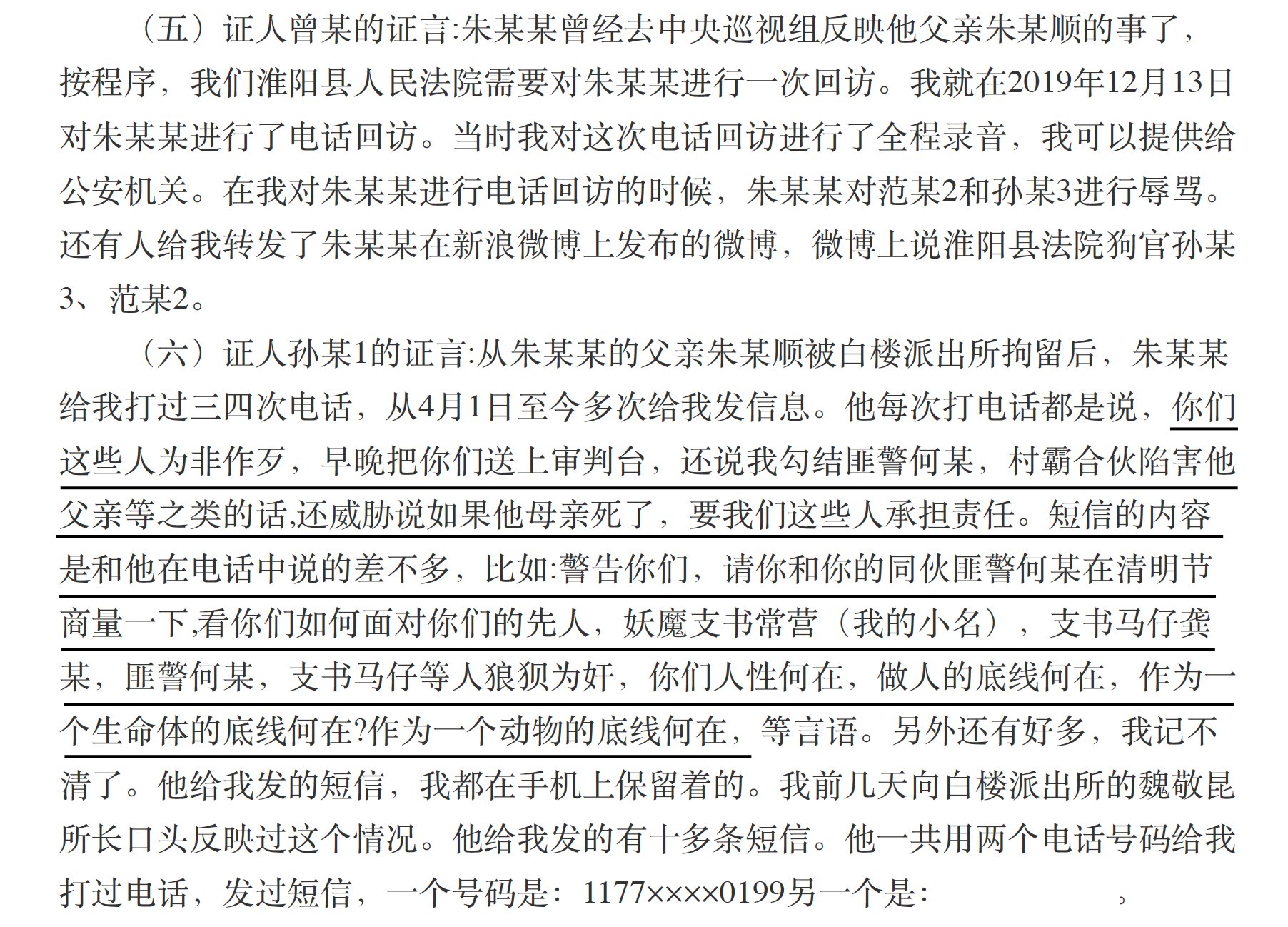 河南省项城市律师朱某,因在其父亲被枉法裁判后,在微博等多个网站“辱骂”当地法院法官及法警,被判处犯有寻衅滋事罪,免予处罚。朱某具体的辱骂内容如图所示,其实多为指责法院徇私枉法,制造冤案等,其中使用了“匪警”和“狗官”等词。