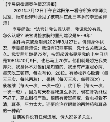 CHRD人权捍卫者: 转发:【李昱函律师案件情况通报】