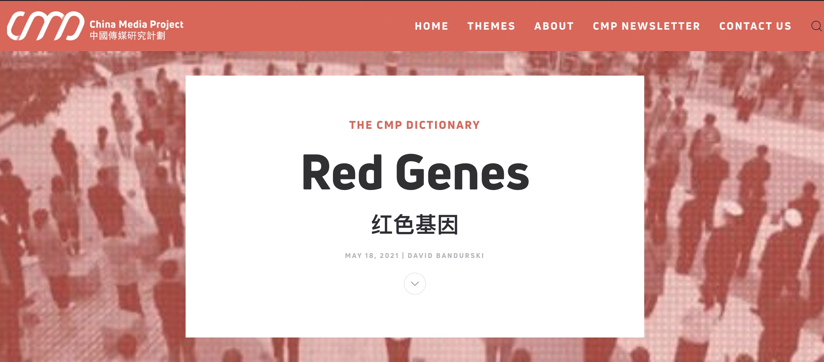 Re “Red Genes” (红色基因) is another term in our growing CMP Dictionary. https://chinamediaproject.org/the_ccp_dictionary/red-genes/