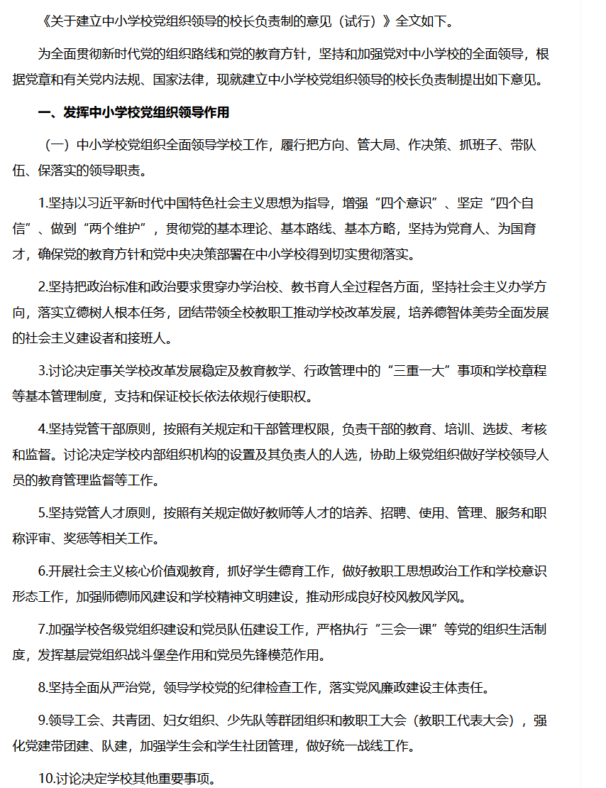 Guideline issued by the Party to ensure its control over the administration of primary & secondary schools