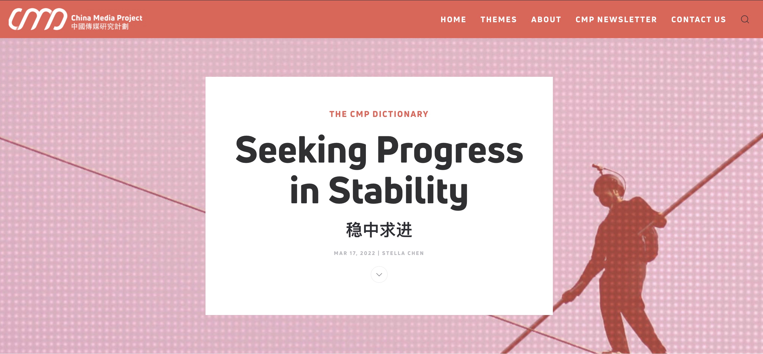 CMP Dictionary: First used in the 90s, “seeking progress in stability” (稳中求进) has come in the Xi era to encompass the idea that China must proceed cautiously with economic development in the midst of persistent domestic and global uncertainties. https://bit.ly/3Im8A5g