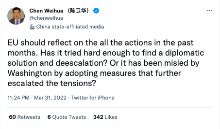 Don’t miss Stella Chen’s piece at CMP yesterday looking at an interesting Chinese journal article on how to use civilian voices to enhance “China’s voice.” What would such a plan for int’l communication actually mean? https://chinamediaproject.org/2022/03/31/putting-the-soft-back-in-soft-power/