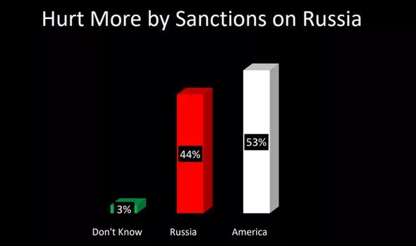 此外,民调显示,53% 的人认为,制裁对美国造成的伤害大于对俄罗斯的伤害。 https://www.express.co.uk/news/politics/1606839/Shock-poll-Ukraine-Zelensky-Biden-lose-war-Russia-Putin-Democracy-Institute-news
