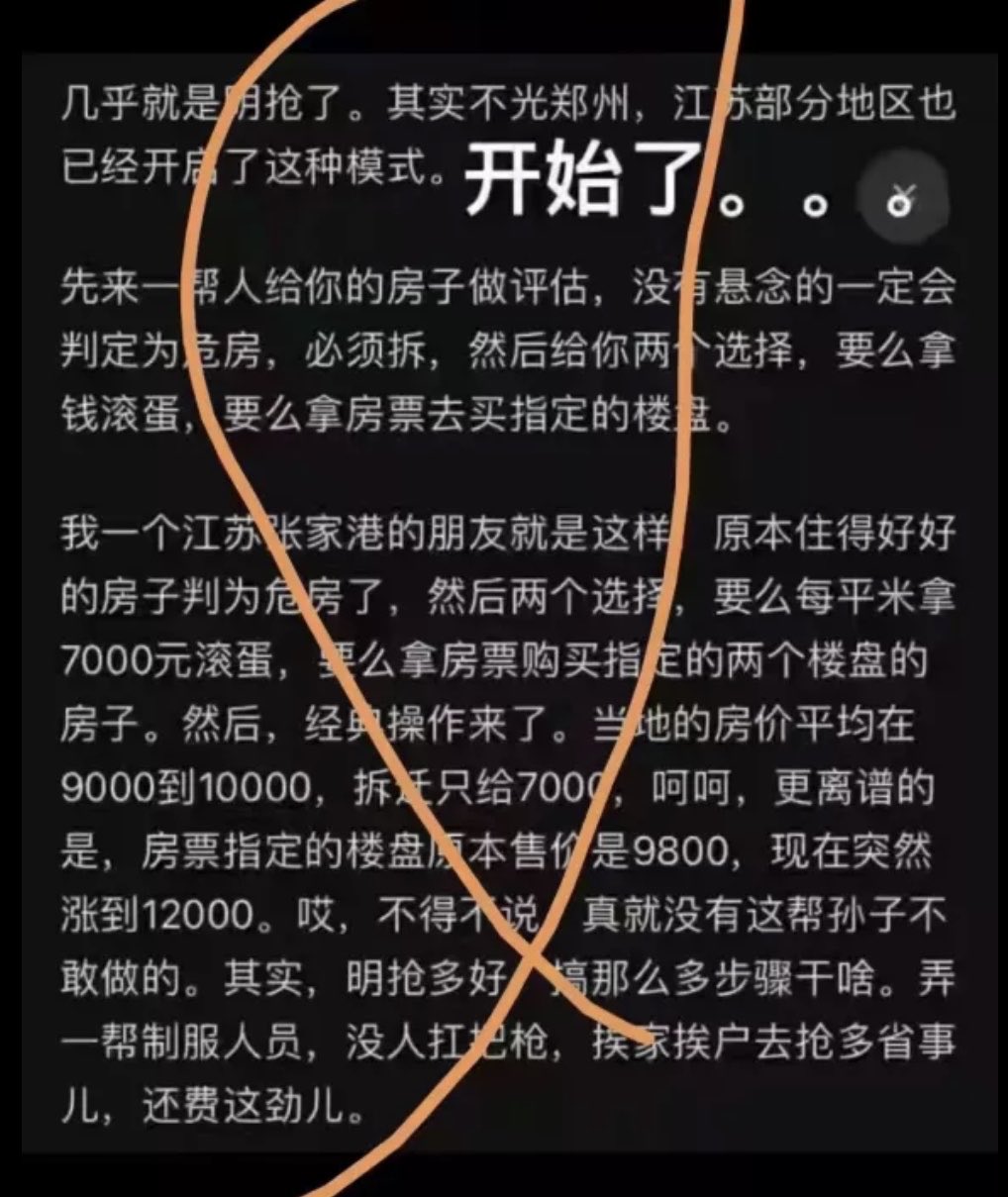 房票不只是郑州连江苏省也做了。习铁拳狠砸民营经济,逼得民企裁员出逃;2年多疫情➕坚决清零,直接搞瘫全国经济。数百万企业倒闭,数亿人失业。政府钱袋子空了就想法抢钱,拆“危房”逼着你买房,发你房票➕房票所指定楼盘抬价,逼民众掏出最后的活命钱。民若不聊生,政权能多久?难道习开始末日疯狂?