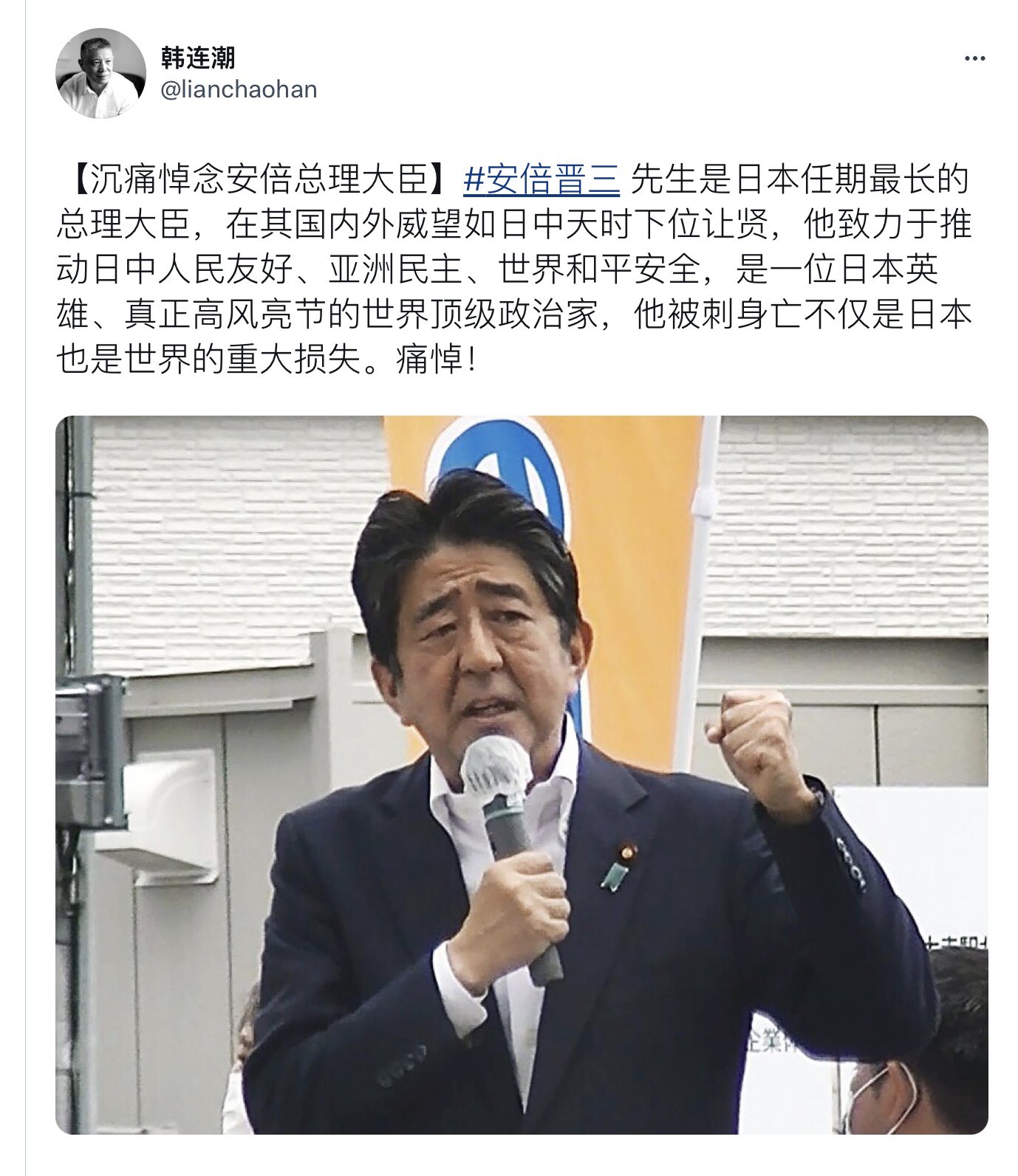 安倍首相意外身亡的消息震惊了世界!他是一位心有大爱的世界级政治家。特地借用四幅网友的图片深切哀悼安倍首相。