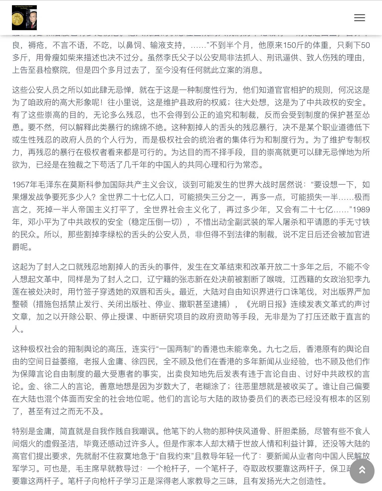 这就是刘晓波2000年的文章全文:《割去社会的舌头》。文章中揭露公民所遭受的酷刑摧残,惨不忍睹,令人发指!