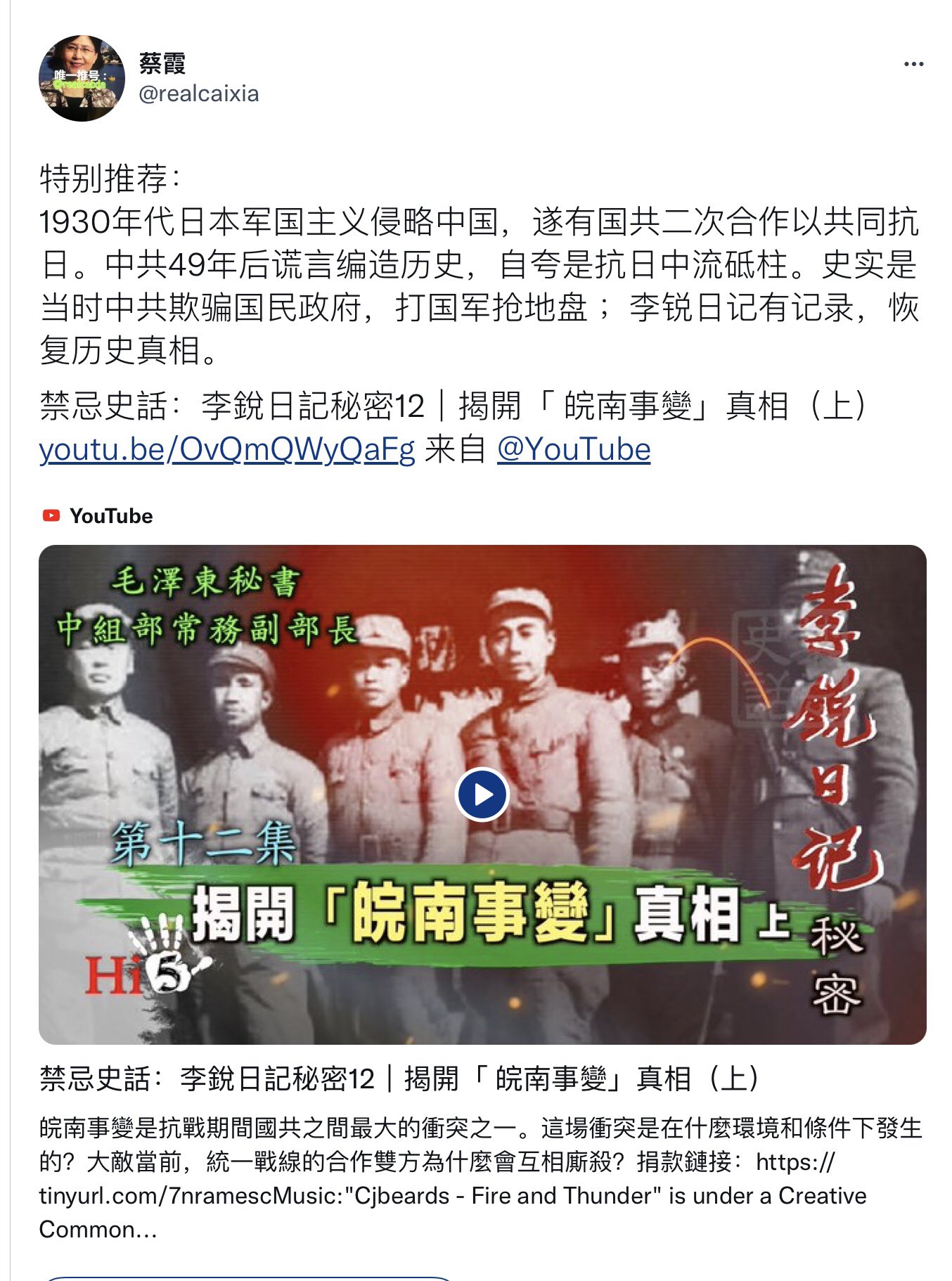 禁忌史話:李銳日記秘密12|揭開「 皖南事變」真相(上) https://youtu.be/OvQmQWyQaFg