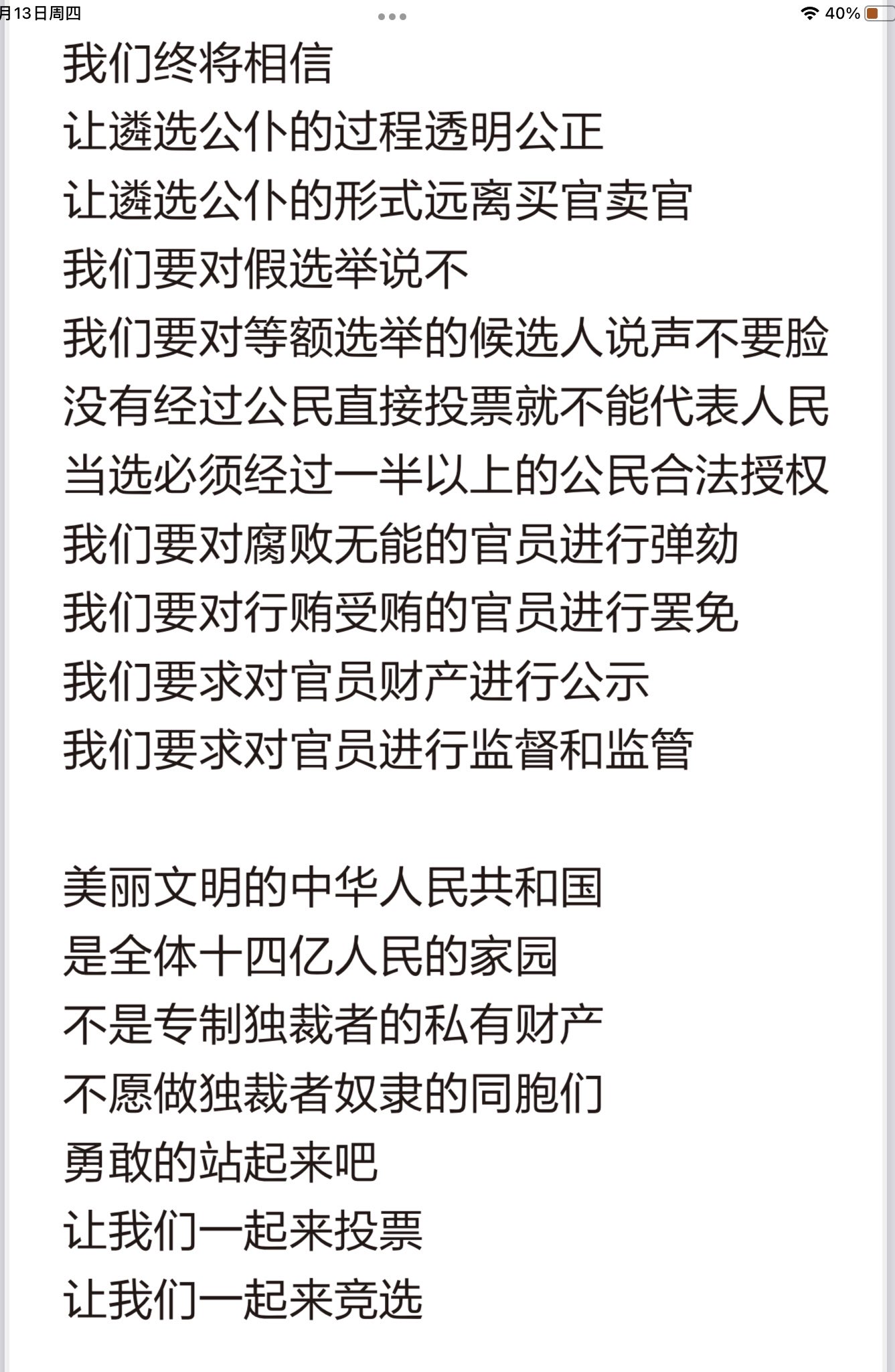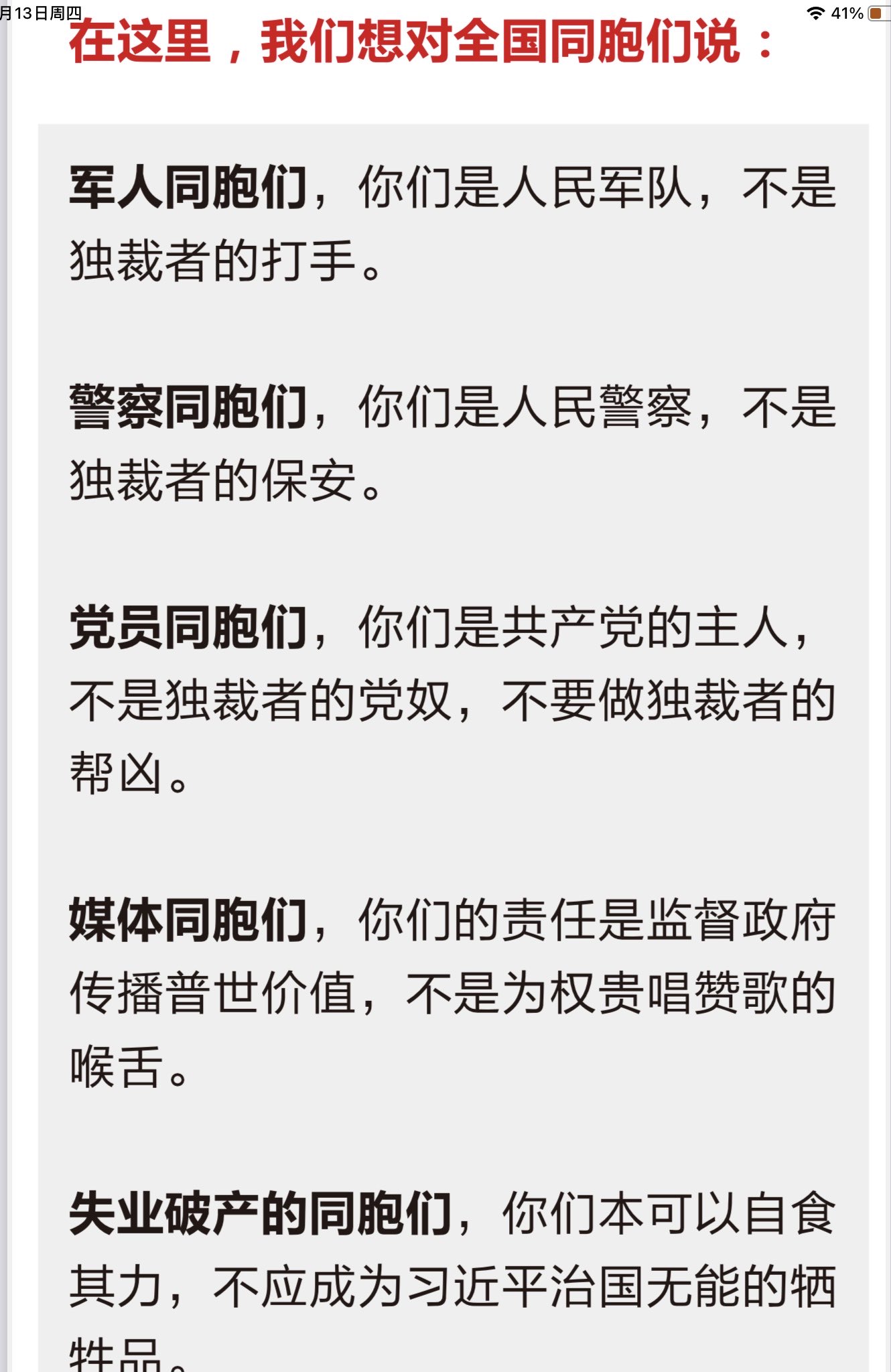 【跟进时代勇士】7: 这是孤胆英雄彭载舟罢课罢工罢免习近平攻略中的告全国同胞书(4):