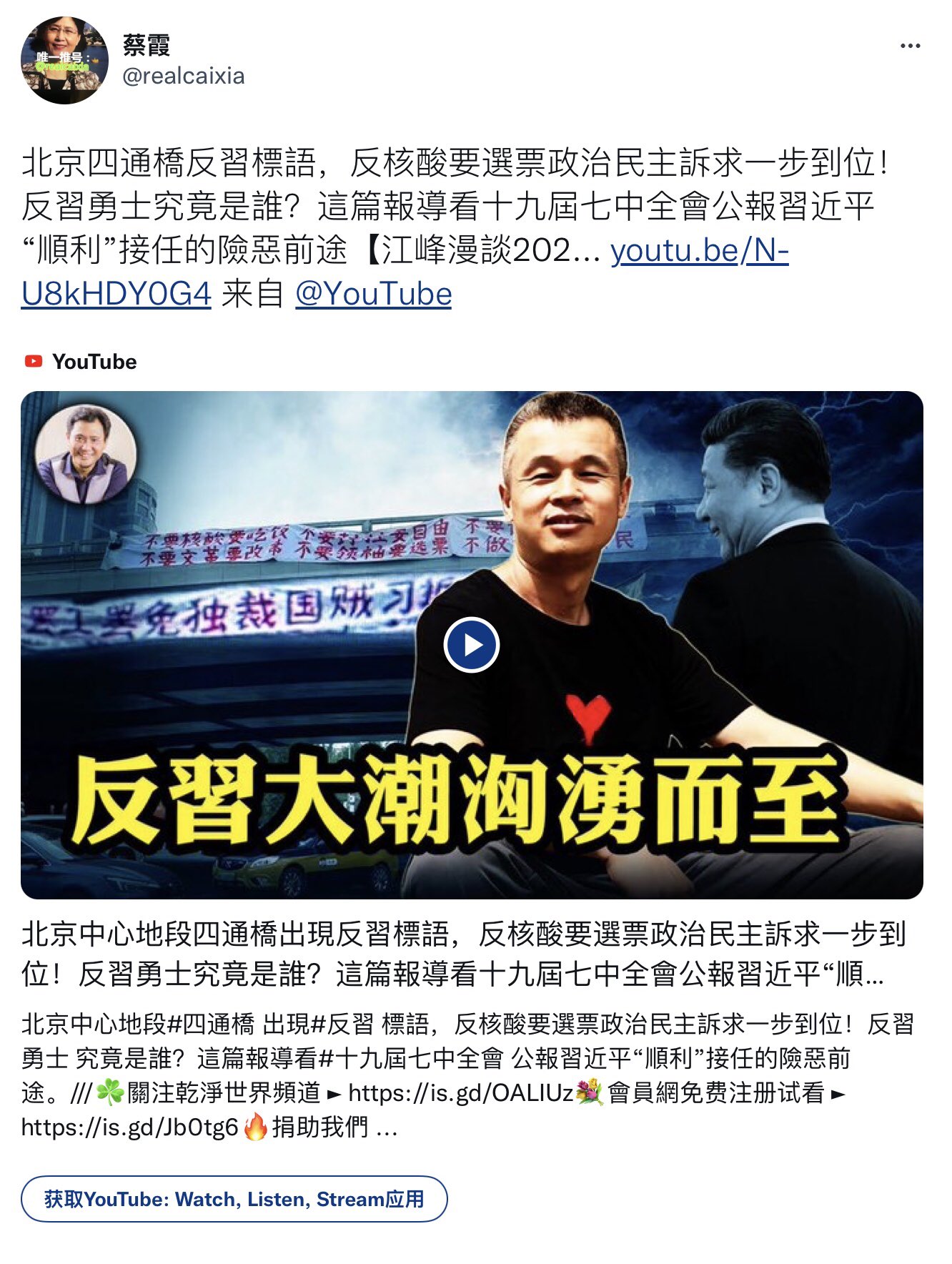 北京四通橋反習標語,反核酸要選票政治民主訴求一步到位!反習勇士究竟是誰?這篇報導看十九屆七中全會公報習近平“順利”接任的險惡前途【江峰漫談202… https://youtu.be/N-U8kHDY0G4