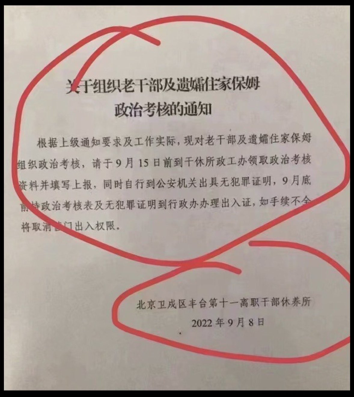 图3是继5月中共发文不许老干部“妄议”后,9月对老干部及遗孀的住家保姆进行政治考核,明摆着要保姆当告密者和中共眼线。卑劣无耻的政治绑架。