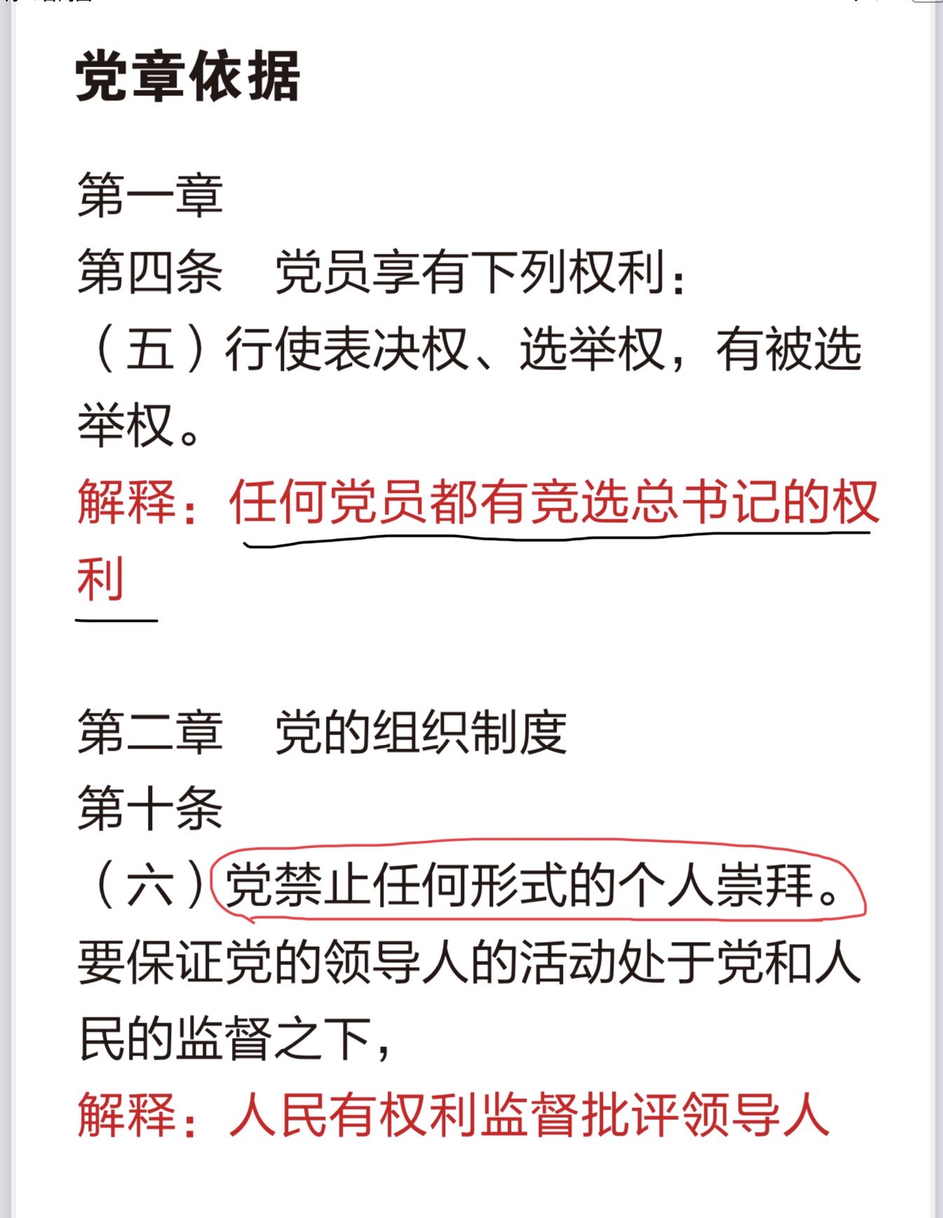 彭载舟先生特地摘录了中共党章关于党员权利、干部标准、干部性质定位和有限任期的规则条文。呼吁中共20大代表们认真学习党章,执行党章,坚决反对习公然破坏党章、违反党章,保权连任的无耻企图。