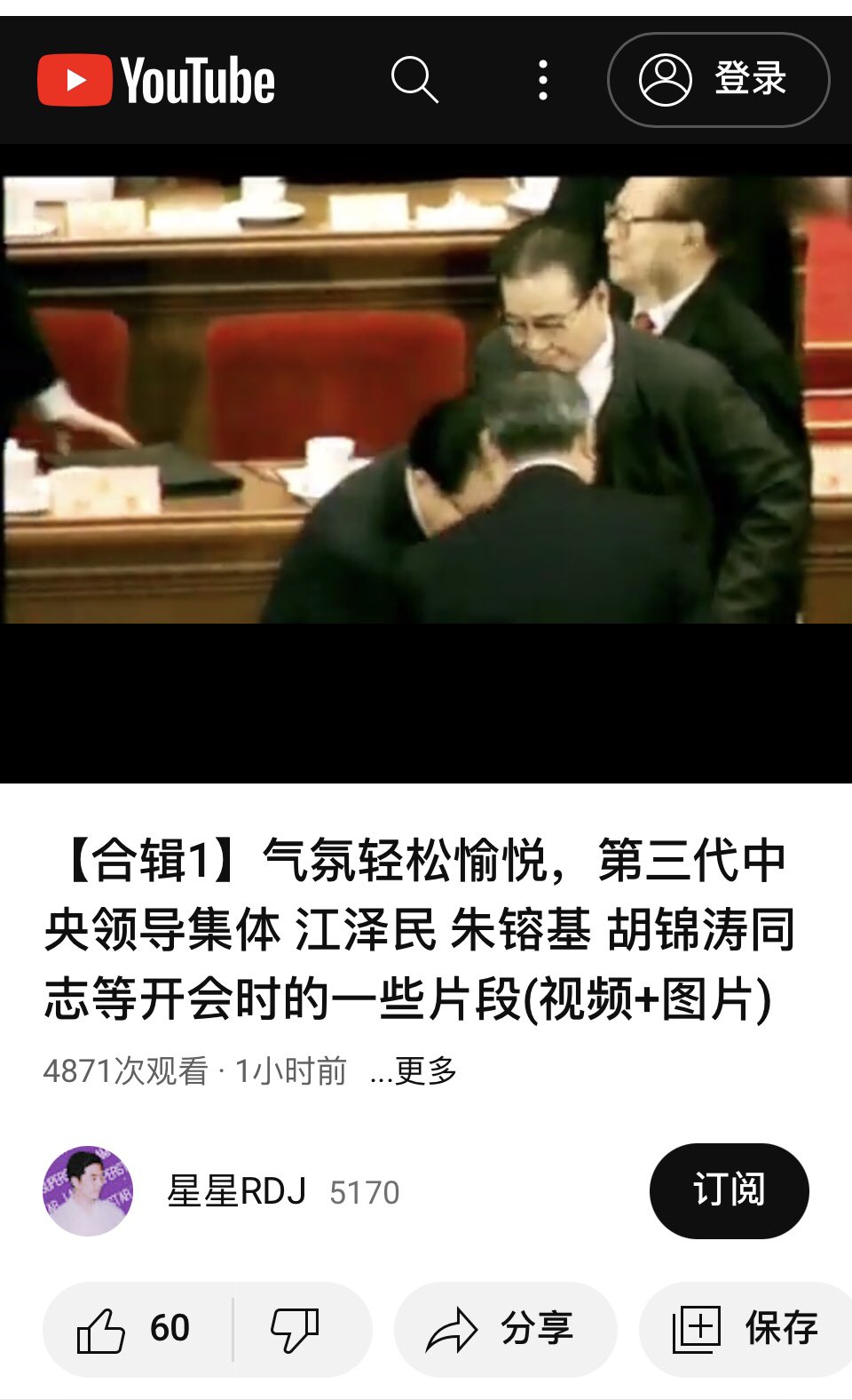 Re 请看中共第三代领导集体中央常委们全体出席会议的愉快神情与轻松互动。