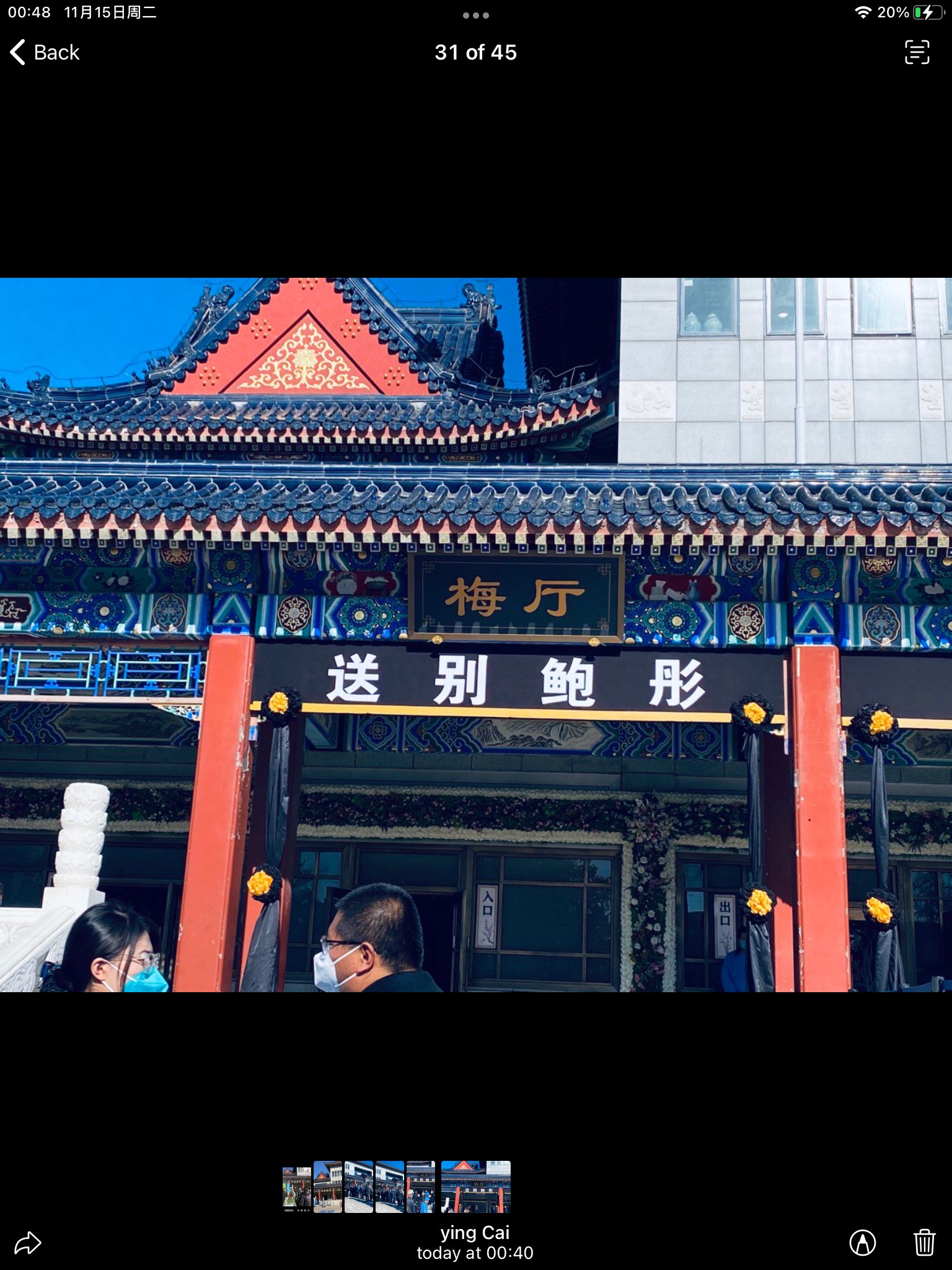 Re 为鲍老送行的梅厅大视频上再现鲍老生前的英容,其中的一幅是鲍老与夫人,背景是家乡秀丽的山河。鲍老躺卧在鲜花环绕丛中,身上覆盖着素兰色的被单,象征着鲍老堂堂正正做人,干干净净做事,清清白白离世。鲍老浩气长存,英灵不朽!