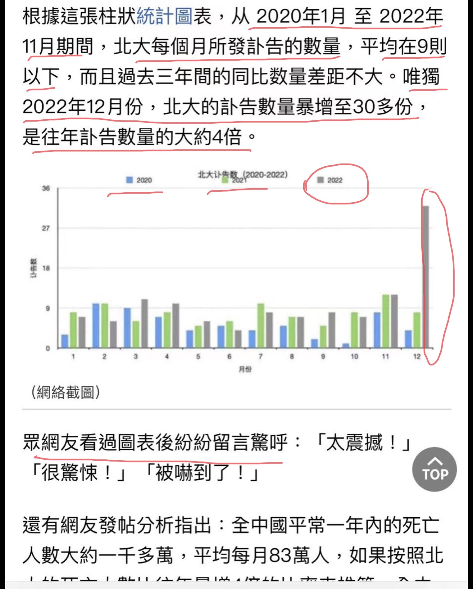 北京大学与武汉大学病亡人数的部分披露!而中共政府对外宣布,12月全中国新冠病亡人数30人!这谎言真是侮辱全世界人的智商。