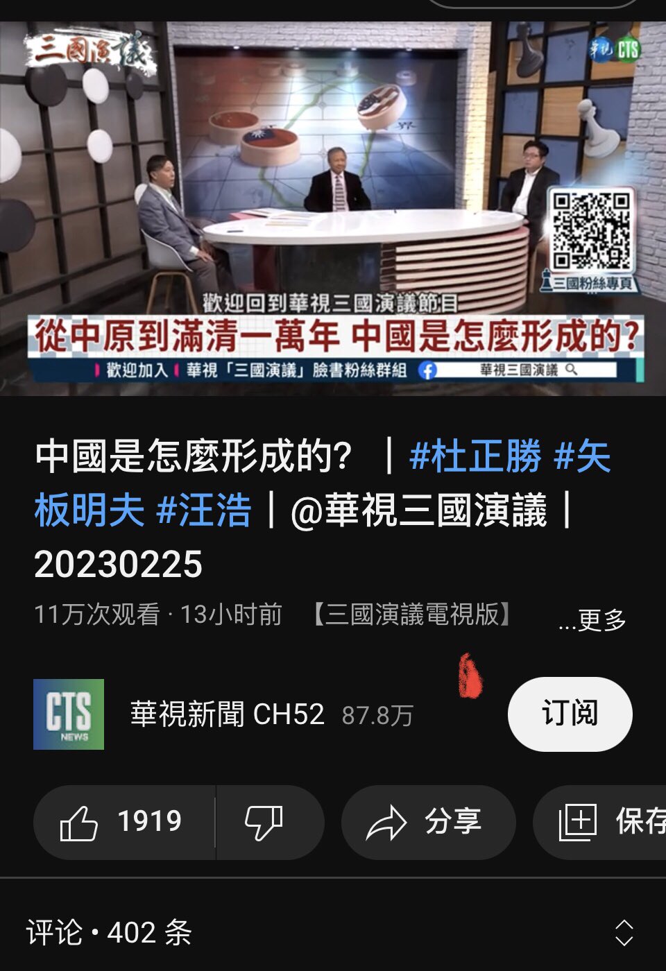 华视三国演义这期节目。台湾中研院研究员杜正胜谈他用大历史概念,依据客观史实资料,用十多年的时间研究中国版图变化,谈他对中国与台湾关系的思考。